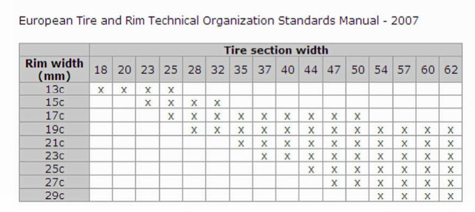 以前より掲載してましたが、タイヤとリムの相性の表です。 ×マークが適合しています。 昨今、増えていますが内径17㎜のリムの場合 700c×23cは推奨されていません。 キャリアの長い方はロードは23Cが一番だと思い込んでいる方もいます。 今一度、ホイールとタイヤの相性をご確認ください。